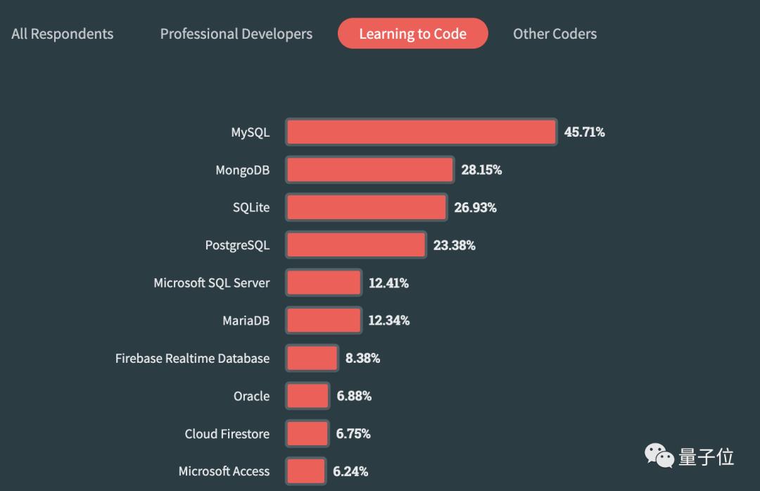 并且相比代码学习者,它更受专业开发人员的喜爱(正在学代码的人还是更喜欢MySQL等其他)。