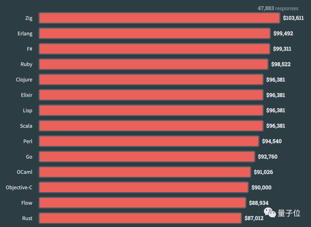 Zig。年薪中位数为103611美元(合人民币约74万元),今年突然杀出来的。