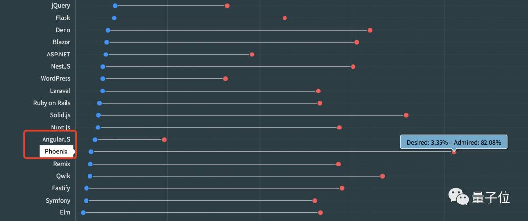 但抛开流行度,大家最喜爱的是Phoenix,也是有高达80%的开发者明年愿意继。