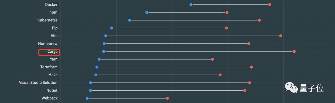 有意思的是,最受欢迎的开发工具其实是Cargo,它在流行度排名中都未进前十,是一位妥妥的潜力股。
