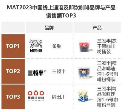 不管是主动强推还是消费者“用手投票”,毋庸置疑的是,三顿半近几年将其“数字系列”即溶咖啡粉打成了爆品。《2023中国城市咖啡发展报告》中也提及,2022年4月到2023年3月,线上速溶及即饮咖啡产品销售TOP3均为此款产品。