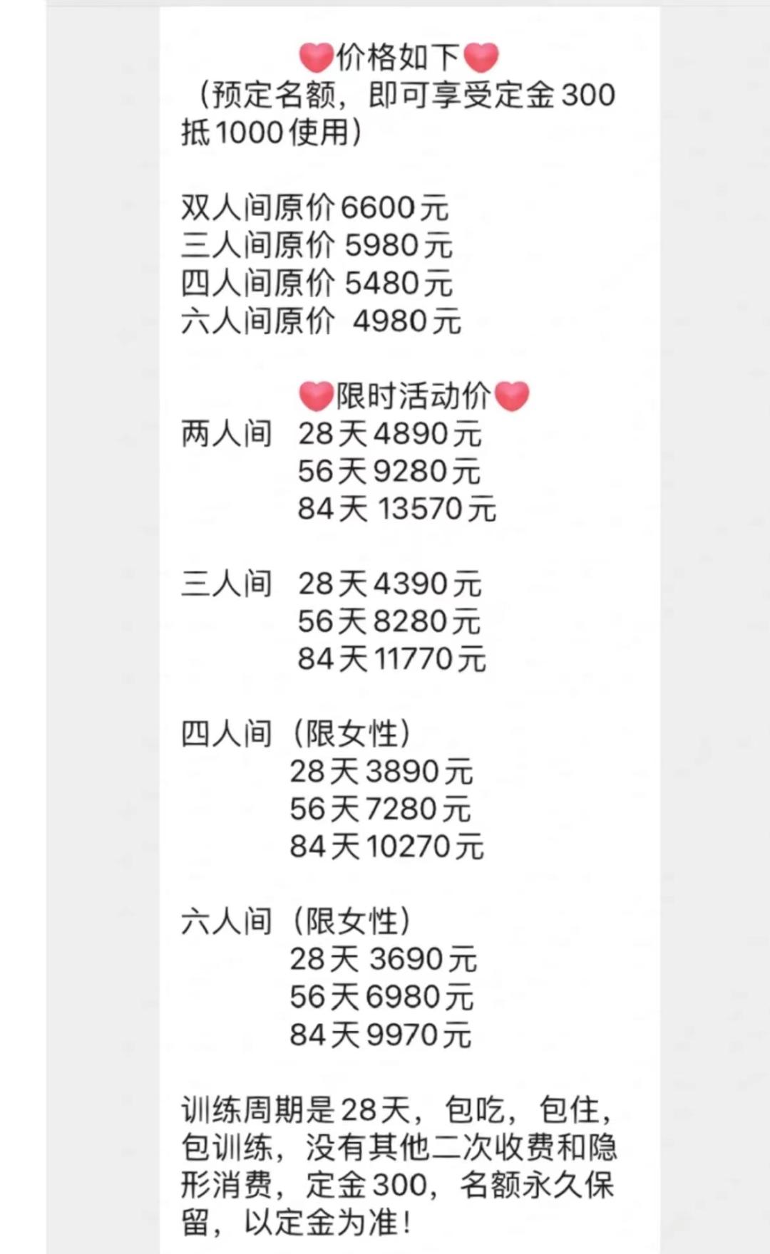 不同房间拥有不同价目表,入营前比价也是重要一环(图源网络)