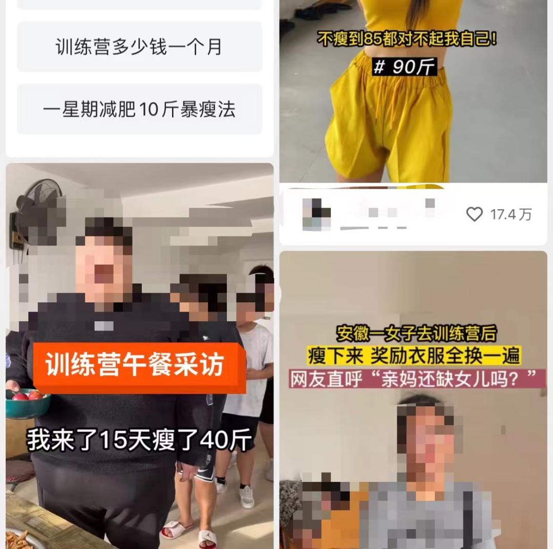 不惜横跨省份和城市,前往陌生的环境,进入全封闭式基地,定下“28天连吃带瘦”的快速瘦身训练项目,在这个夏天之前,减肥训练营成为了他们全部的希望寄托。