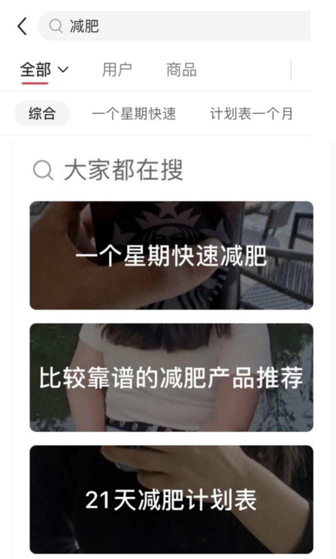 如果打开一线白领丽人,千万少女必备的小红书上搜索“减肥”后,无数瘦身教程,瘦身食谱铺天盖地袭来,还有不知道P没P的减肥前后对比图。