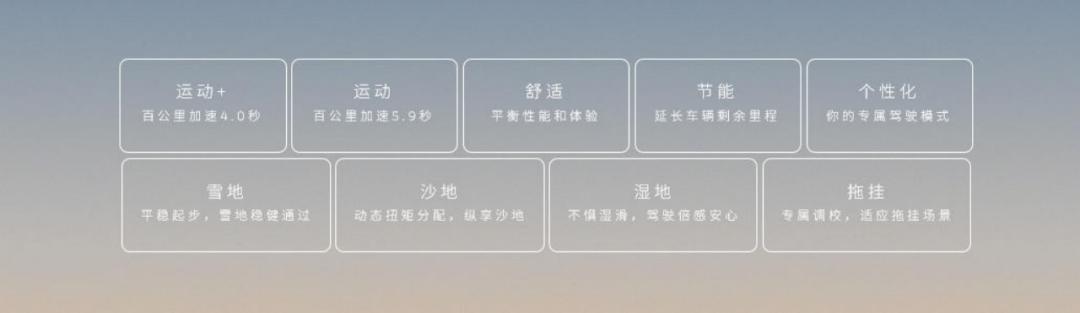 为了让ET5 Touring更贴合旅行车,蔚来一次性配备了9种全场景驾驶模式,包括雪地、沙地、湿地、拖挂等等,满足不同用户的驾驶习惯,和不同场景的需求。
