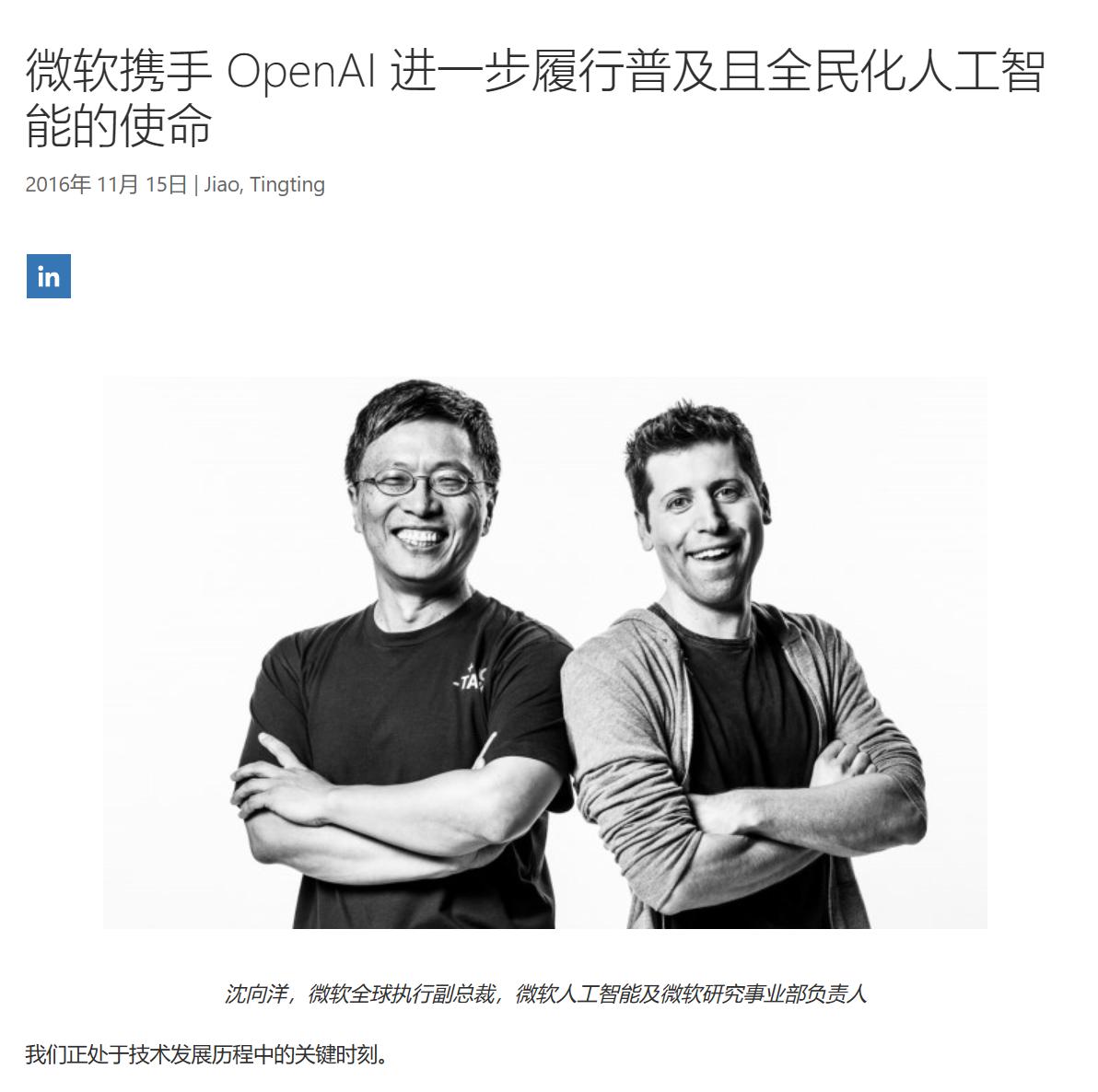 同一年,谷歌在 I/O 大会上提出「AI 为先」的战略,往后每年都要一遍又一遍地强调,并将 AI 越来越多地融入自家的产品之中。微软也第一次宣布携手 OpenAI「履行普及且全民化人工智能的使命」,那篇新闻稿在开头就写道:「我们正处于技术发展历程中的关键时刻。」