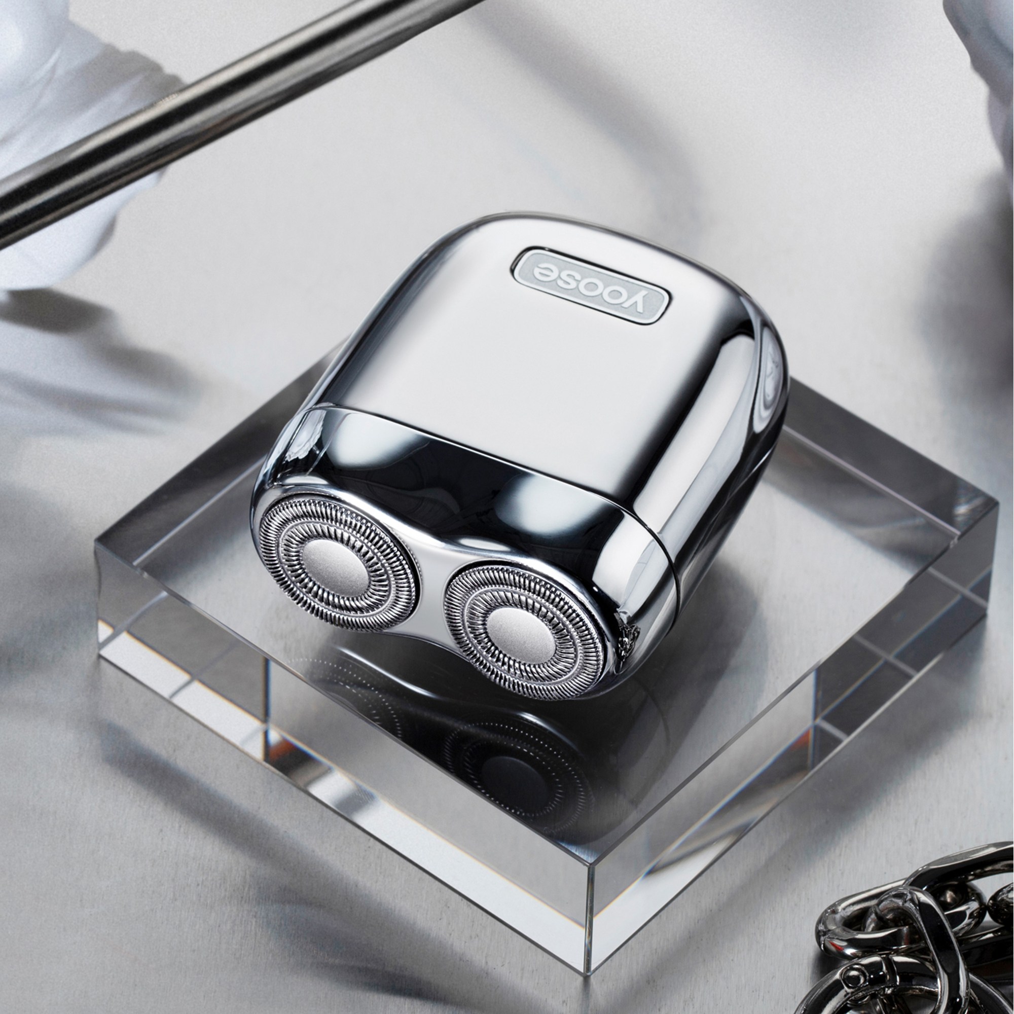 yoose有色第一款mini剃须刀主打便携性,其大小跟苹果蓝牙耳机充电盒相仿,体积小巧但续航时间长,内置400mAh锂电池,底部为Type-C充电接口,1小时即可快速充满电,正常使用约可以用60天。