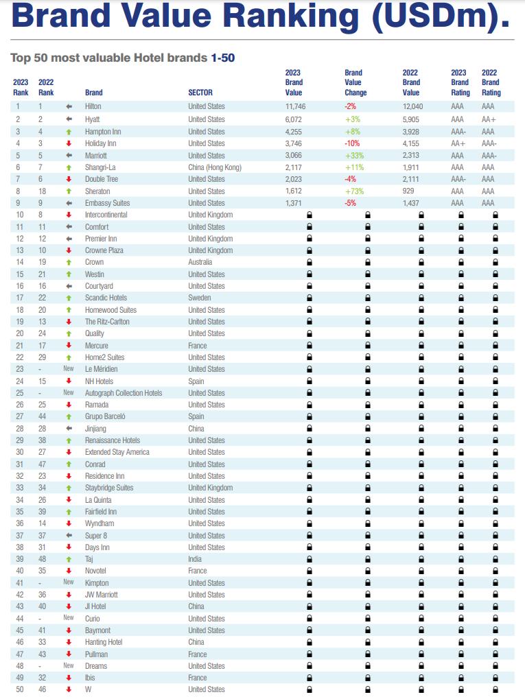 Hotels 50 2023 - The annual report on the most valuable and strongest Hotel brands. (Brand Finance)