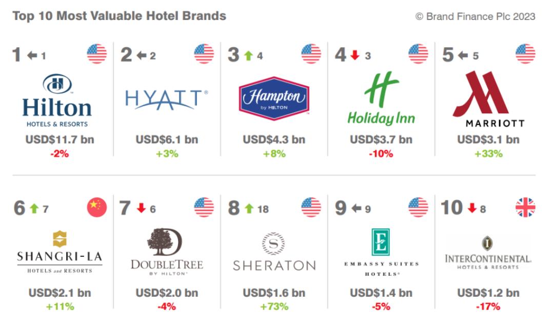 艾美酒店品牌价值增长最快,温德姆降幅最大