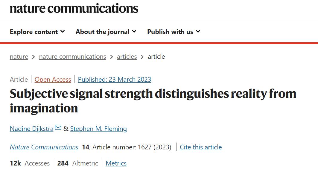 Dijkstra, N., Fleming, S.M. Subjective signal strength distinguishes reality from imagination. Nat Commun 14, 1627 (2023). https://doi.org/10.1038/s41467-023-37322-1