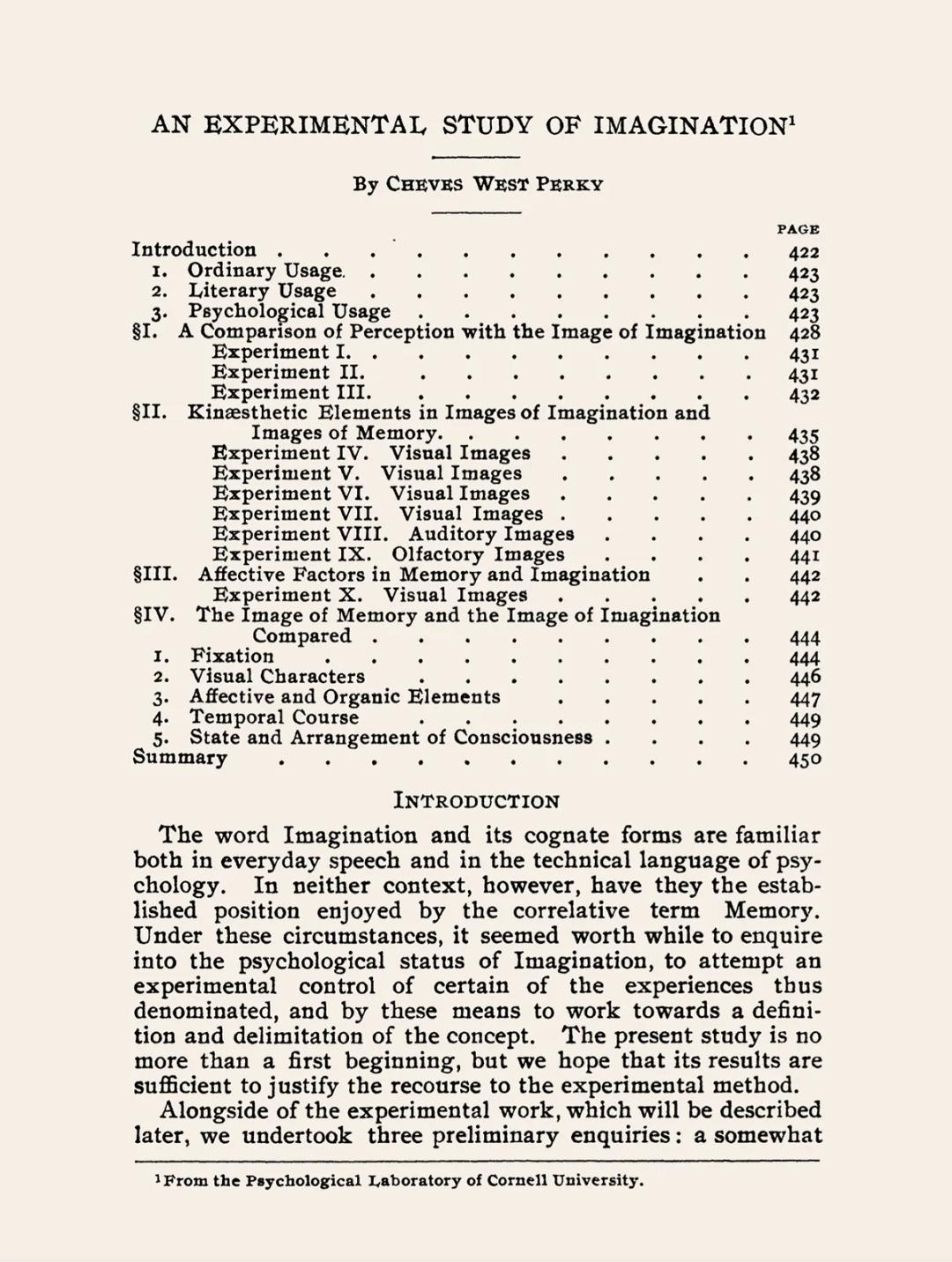 心理学家玛丽·切维斯·韦斯特·珀基在1910年的一项研究发现,当我们的感知与想象相吻合时,我们会认为它们的输入是虚构的。