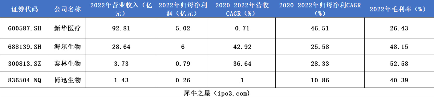 同行业上市公司业绩对比