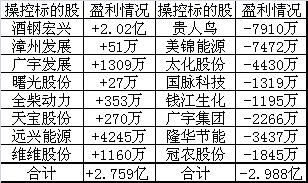 这16只股正好是一半盈利合计2.759亿,一半亏损合计2.988亿,