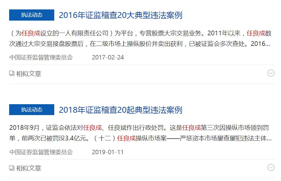 而且,这已经是任良成第四次被处罚了,早在2015年、2016年和2018年就分别被处罚,后面的两次都上了当年的证监稽查20起典型违法案例: