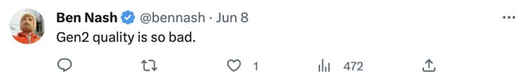 在此之前,Gen-2从3月下旬开始已经进行了一段时间的小范围测试。