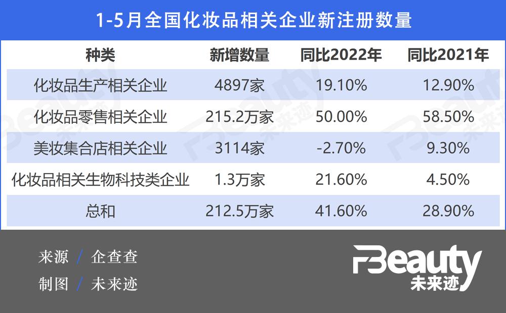 212.5万家!前5月新增化妆品相关企业增加41.6%