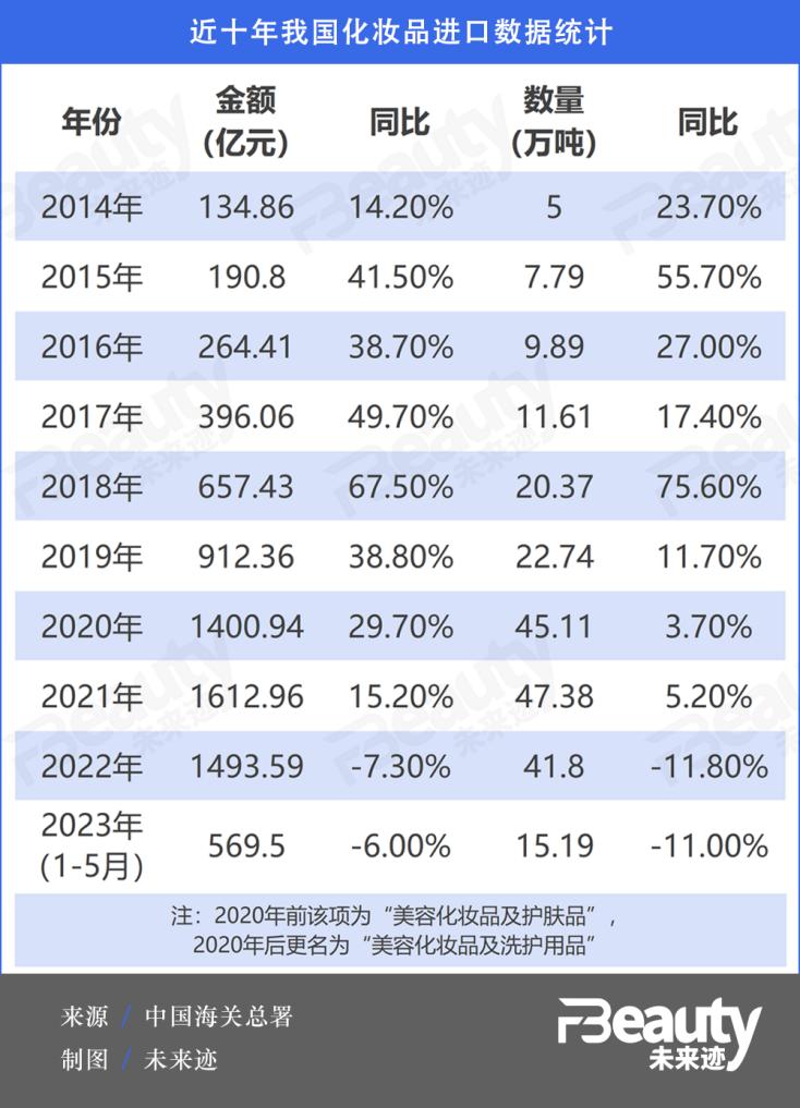 中国海关总署官网发布的《2023年5月全国进口重点商品量值表》统计数据也说明,国内化妆品市场持续回暖,进口化妆品却没有迎来增长。