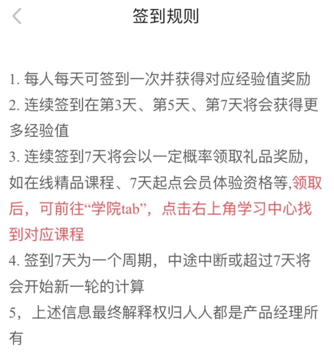 每天自觉使用产品而不去签到以及每天都去签到的人是两种用户属性,每天都会使用产品的人一般不需要专门为他们而设计签到功能。