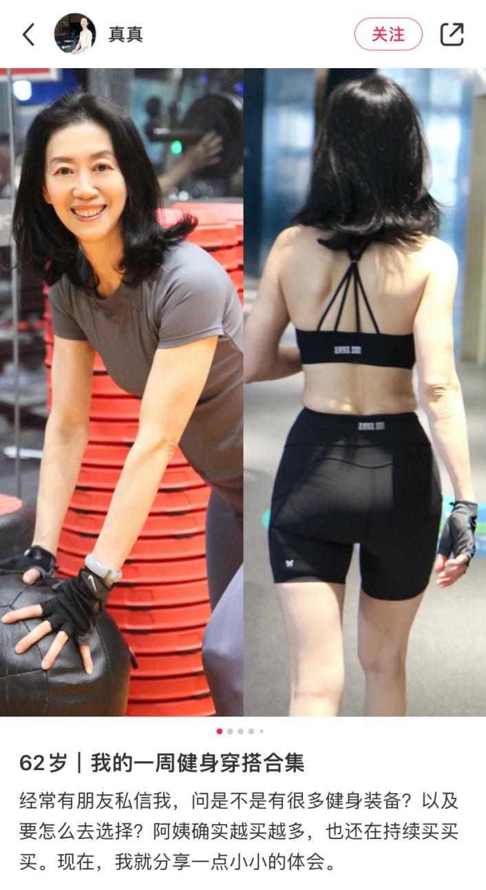 62岁的小红书用户@真真 从55岁退休后走进健身房,在孩子的鼓励下成为了小红书博主,热衷于分享健身日常。真真说:“55岁退休后我的生活突然安静了许多。没有了不停响的电话,也不再需要去尘土飞扬的工地。我想这个阶段的我能做什么呢?我能做的就是照顾好自己的身体,我要健康快乐地陪伴在亲人身边。现在的我还有一笔兼职收入,我就把这笔收入拿去健身找教练指导,也深深爱上了运动。”