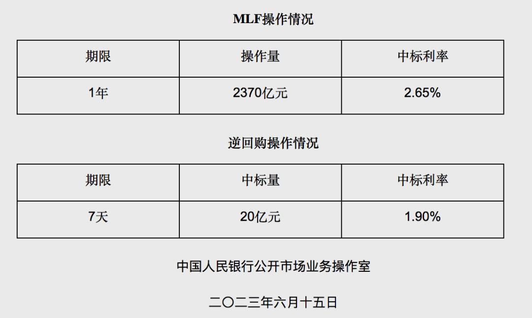 近日,中国人民银行(以下简称“央行”)发布消息称,为维护银行体系流动性合理充裕,开展2370亿元中期借贷便利(MLF)操作和20亿元公开市场逆回购操作。其中,MLF操作利率为2.65%,较此前下调了10个基点。
