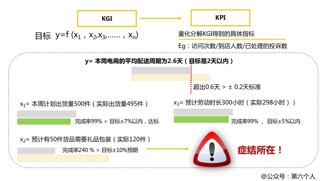 我将亚马逊的虚拟信息进行了进度复原,可以看到,KPI本身是最后归因的依据,拆解成业务的各个要素之后,企业就可以根据经验设定可接受的范围值;当运营超出范围,或相比竞争对手/行业平均标准超线时,就能找到未来改善的方向。