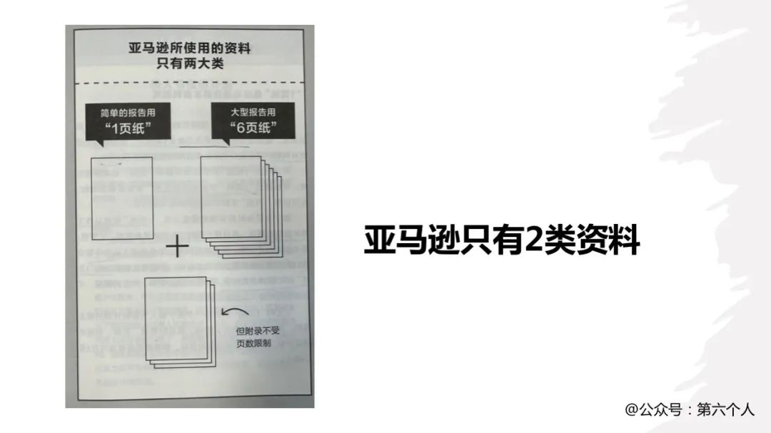 亚马逊的会议资料只有2种形式:1页纸和6页纸。