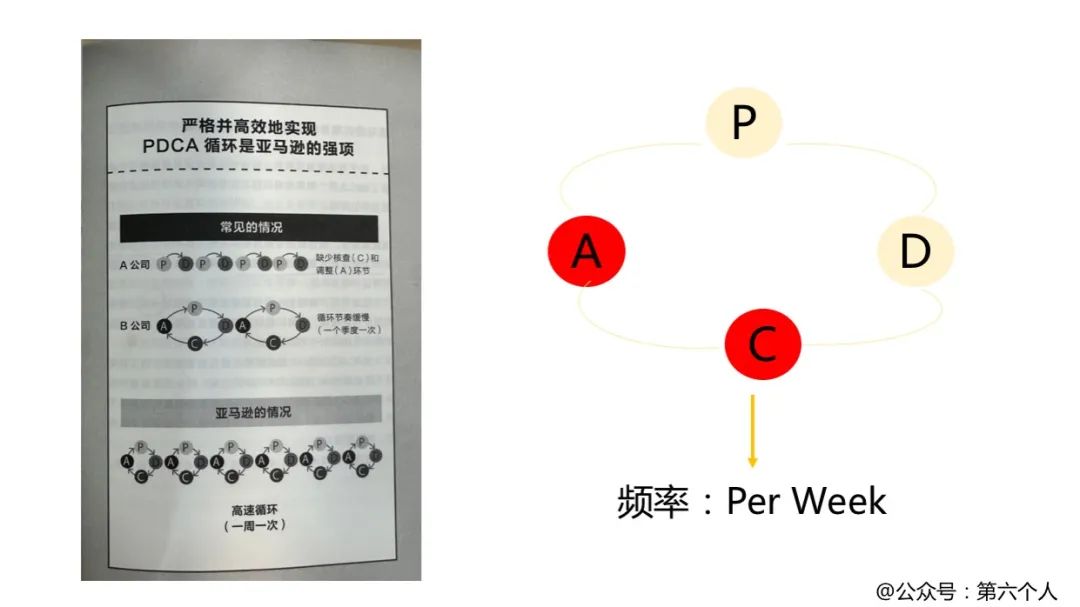 有了拆解指标的方法,结合PDCA就可以很好的管控项目进度。只不过,作为一家典型互联网公司,亚马逊大大浓缩了这个节奏,每周一次,对项目的停滞容忍也是以周为单位。这一点,尤其值得学习。