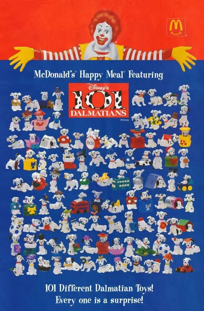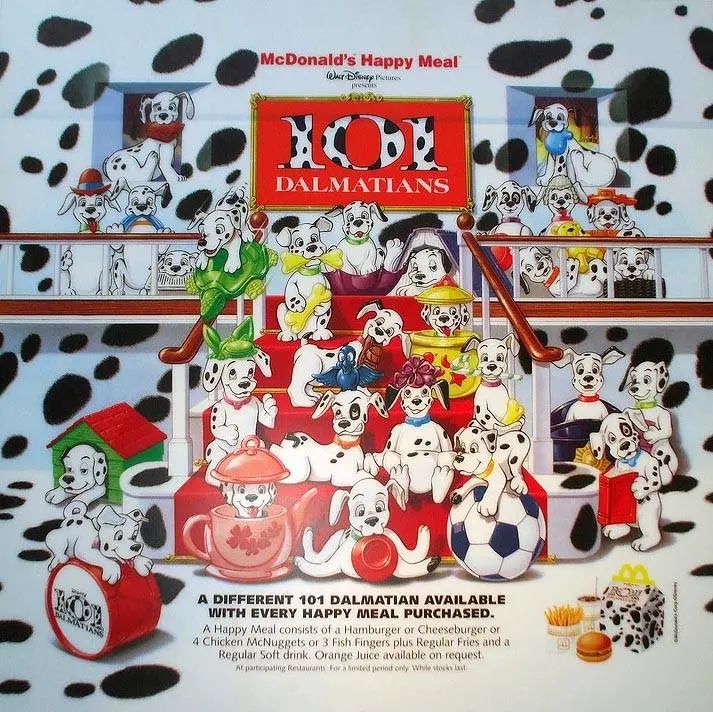 试问,哪个 90 后不想凑一套麦当劳迪士尼 101 斑点狗玩偶(最好是毛绒版)!