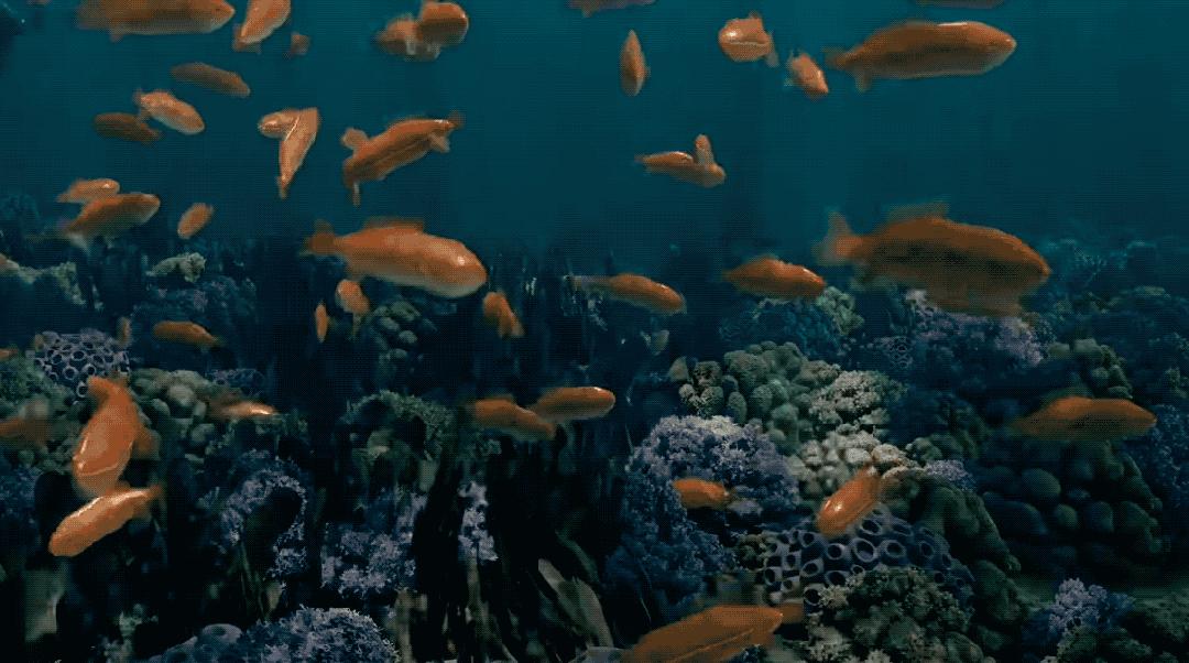 又或者是使用差异化生长、拉普拉斯生长和反应扩散制造各种珊瑚、使用几何节点图生成树叶、花朵、海藻、海带、软体动物和水母。