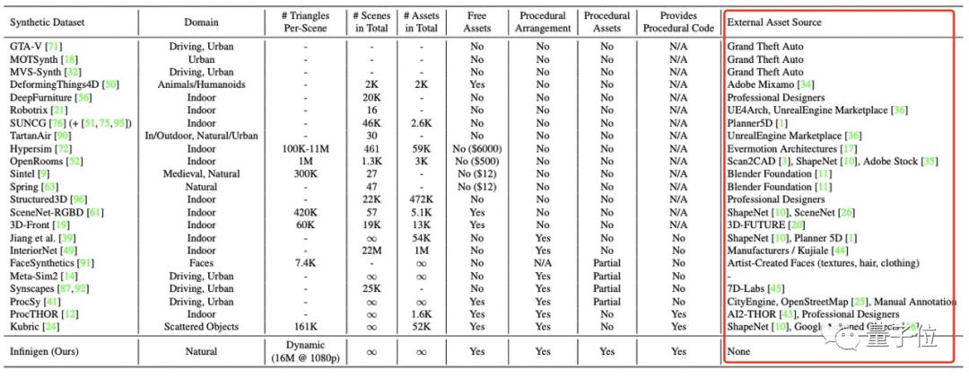 下表是它与现有合成数据集或生成器的比较。