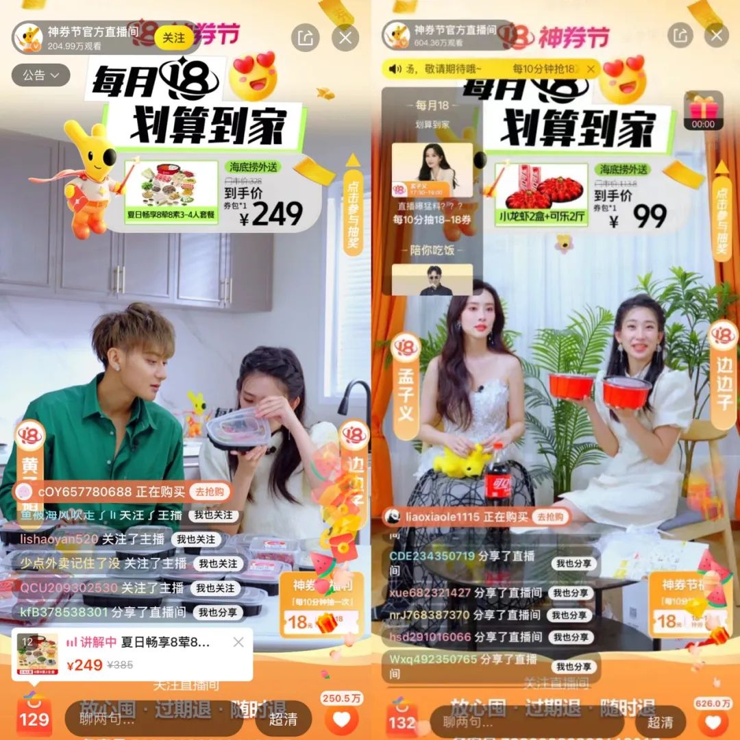 今年4月开始,美团外卖升级了神券节的玩法,通过KOL直播、“外卖+到店”联动,打造了一个限时特价的“爆品场”。在张赢看来,结合了直播的神券节,能更好地触达消费者,激发消费需求,促成交易。