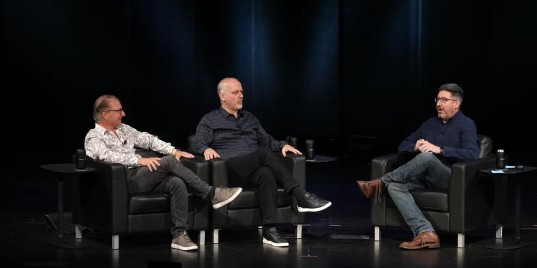 ▲从左到右分别为:Mac硬件负责人John Ternus、苹果副总裁Mike Rockwell、主持人John Gruber