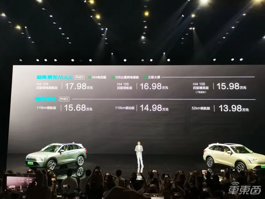 进入5月份,哈弗枭龙于中旬上市,15.98万起售。发布会现场,哈弗方面暗暗向友商喊话,并喊出了“枭龙用两驱的价格享受四驱的体验”的口号,长城汽车总裁穆峰表示,“哈弗枭龙系列将开启哈弗新能源真正意义上的反攻元年,成为科技平权和技术普惠的典型代表。”