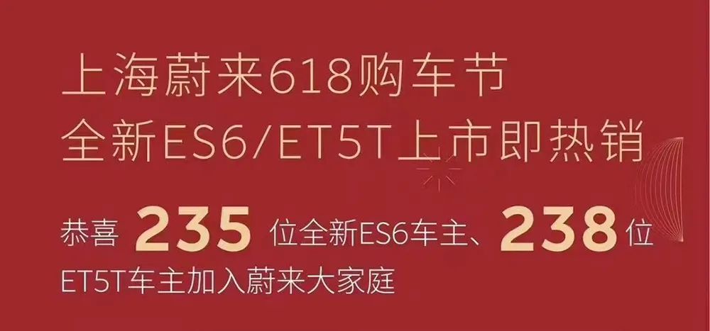 ▲上海蔚来618购物节全新ES6、ET5T销售数据(图源网络)