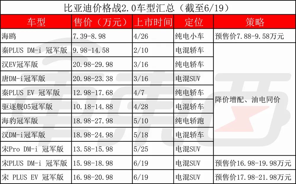 ▲比亚迪价格战2.0 DM-i冠军版车型