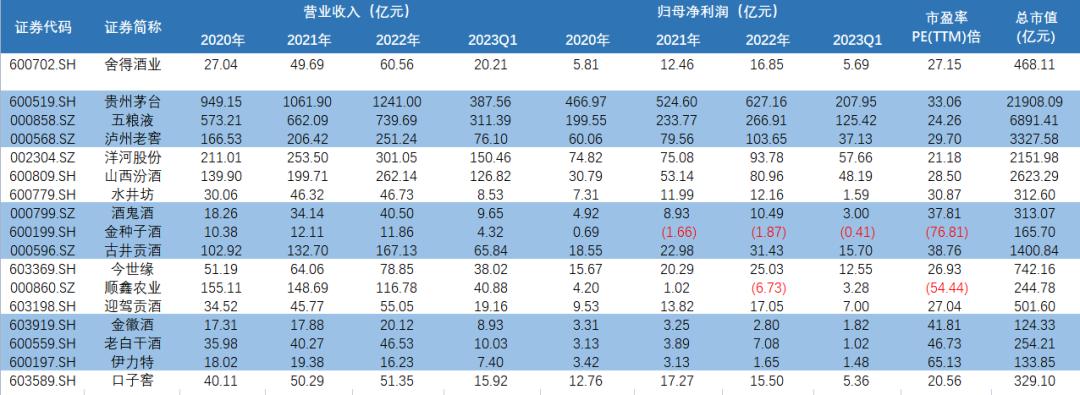 图:白酒公司业绩及估值对比数据来源:wind、36氪整理