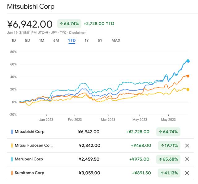 今年以来,三菱股价已上涨超64%,三井上涨约20%,丸红上涨超65%,而伊藤忠商事和住友商事上涨超41%。