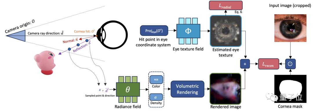 所以,实验团队基于这点,将经典的成像方法(比如照相机)和NeRF(神经辐射场)技术结合,通过使用静止相机,从头部移动下的眼睛图像中提取多视角线索。