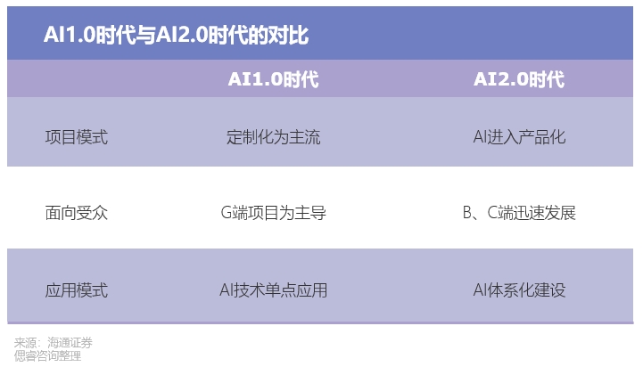2022年底ChatGPT问世,为AI界送来“解药”。大模型优化了泛化能力不足等问题,成本降低指日可待,自此,AI 2.0时代正式拉开帷幕。