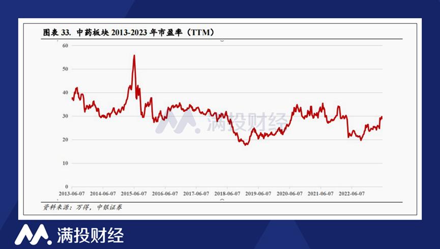 从估值的角度,中药板块整体处于景气度恢复周期,市盈率仍处于历史较低位。截至2023年6月16日,申万中药板块PE估值为27.7倍,环比下降 0.23,低于2018年以来估值均值水平。但在政策、需求上涨等利好因素的助推下,向上的势头明显。