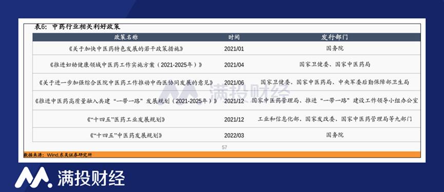 2022年3月29日国务院发布《“十四五”中医药发展规划》,也对中医药的发展提出了明确的目标,要求到2025年中医药振兴发展取得积极成效,并设置了一系列具体发展目标。在顶层政策的加持下,中医药行业有望迎来蓬勃发展时期。