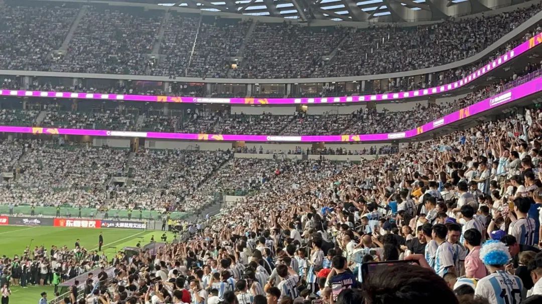 6月15日,北京工人体育场,在中国球迷观赛史上将是经典记忆。51385名球迷,一场阿根廷对阵澳大利亚的国际足球邀请赛,全场沸腾。球迷们已经很久没有这样为一场比赛如此呐喊过了,观众席上,很多球迷身穿阿根廷队10号球衣汇成“蓝白海洋”,让比赛摇身变成了梅西和他带领的阿根廷队的主场。