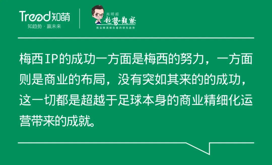 梅西IP的成功一方面是梅西的努力,一方面则是商业的布局,没有突如其来的的成功,这一切都是超越于足球本身的商业精细化运营带来的成就。
