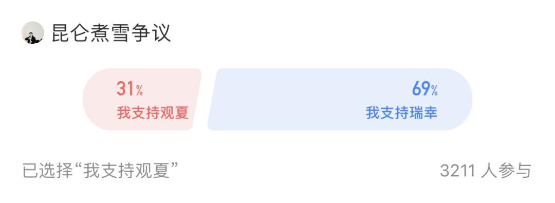 此声明一经发布立刻引发消费者热议。还有人在小红书发起投票“昆仑煮雪争议,你支持谁?”