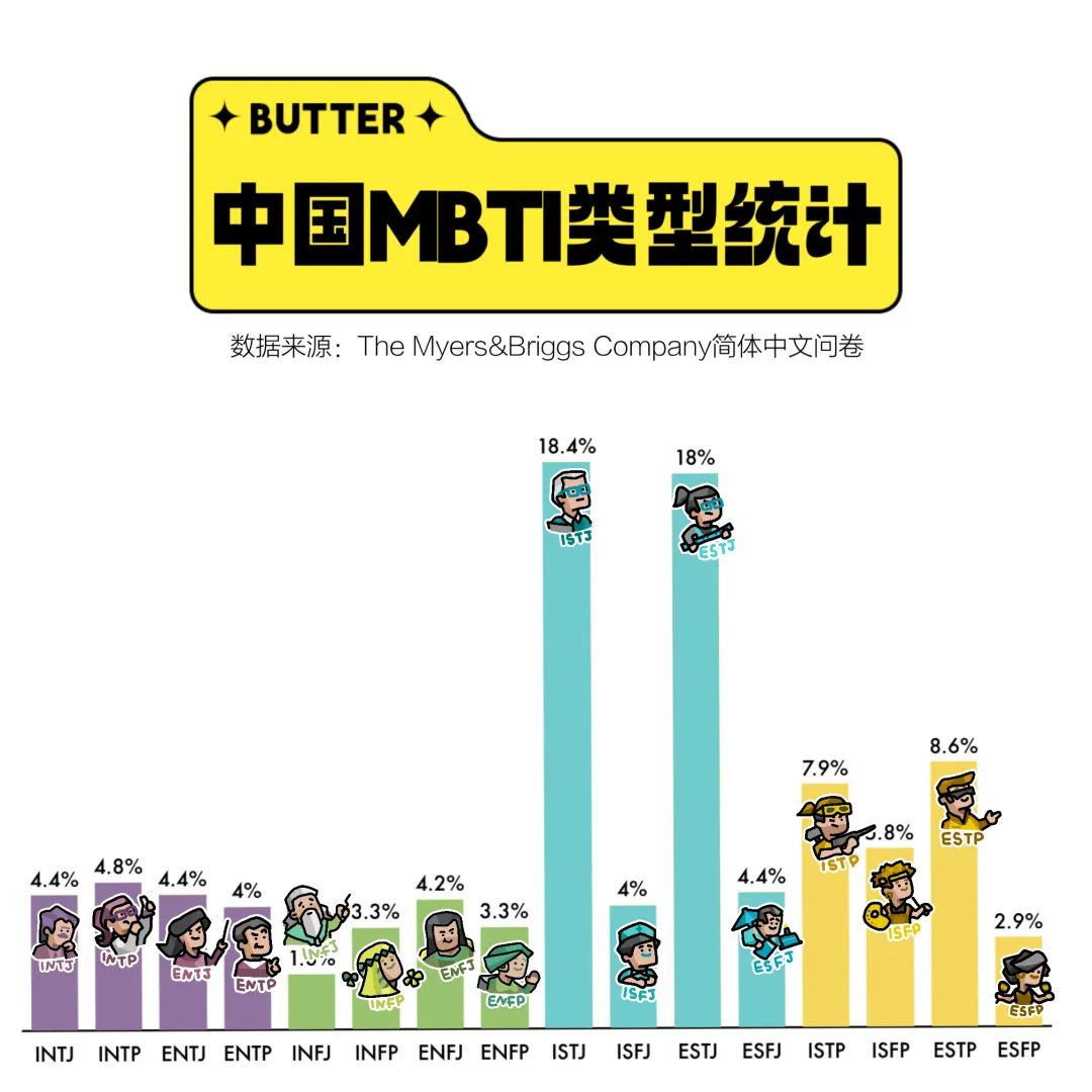 ▲据The Myers&Briggs Company简体中文问卷统计,中国样本里最多的人格是ISTJ(物流师人格)和ESTJ(总经理人格)