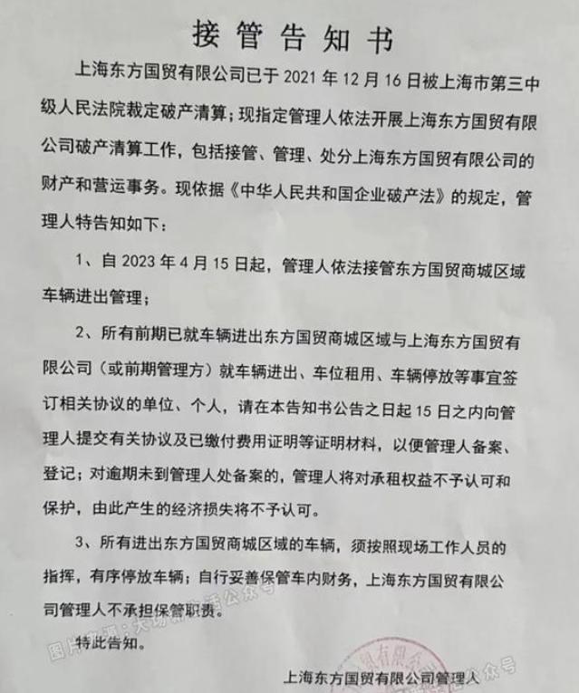 上海东方国贸有限公司已于2021年12月16日被上海市第三中级人民法院裁定破产清算。