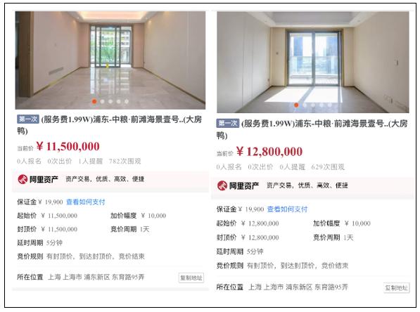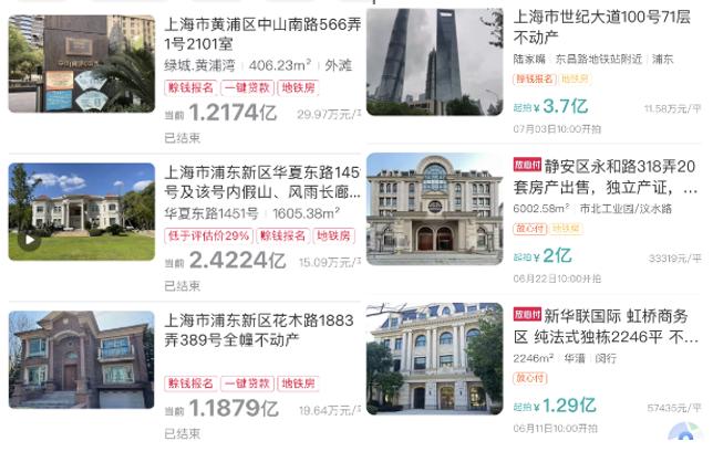 当我打开全球最大的线上拍卖市场阿里拍卖平台,一搜上海被拍卖的1亿豪宅,大量的法拍房瞬间扑面而来。
