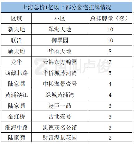 关于上海1亿以上豪宅的真实挂牌量到底有多少。