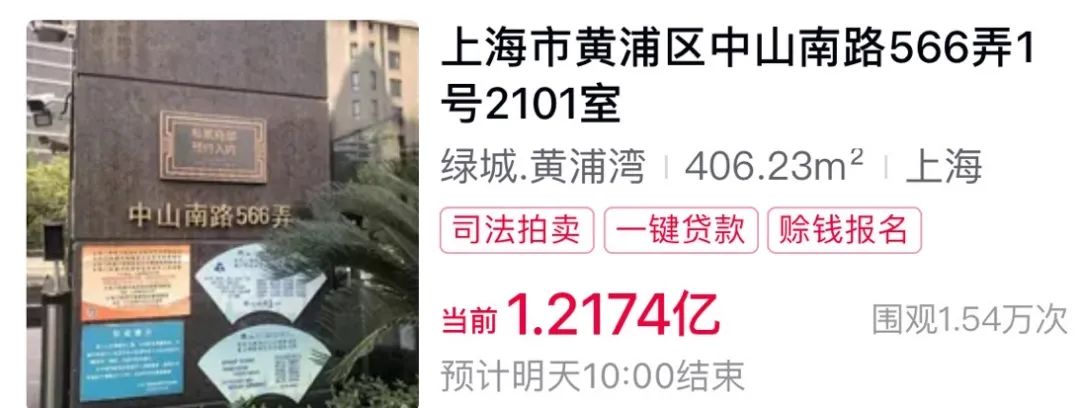 不过,上达1亿的法拍房只有一套406平,起拍价1.2174亿。