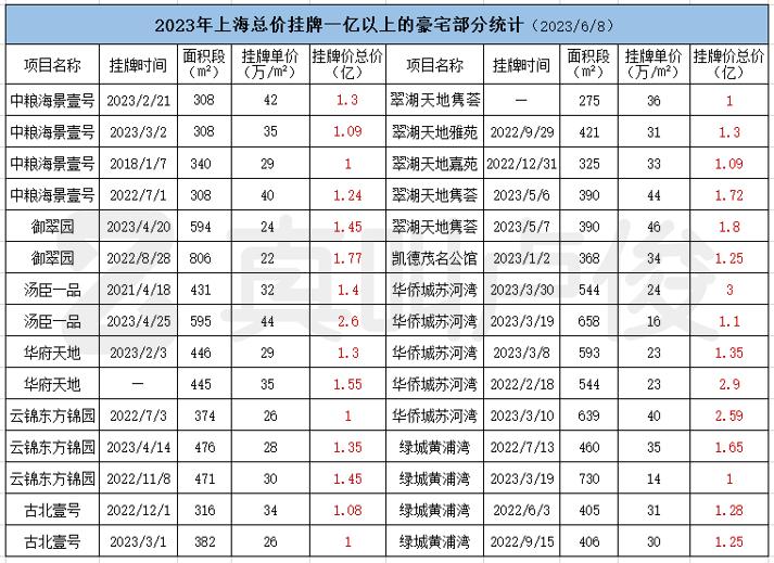 除此之外,关于翠湖天地、华侨城苏河湾、古北壹号...1亿以上的天价豪宅纷纷挂牌。